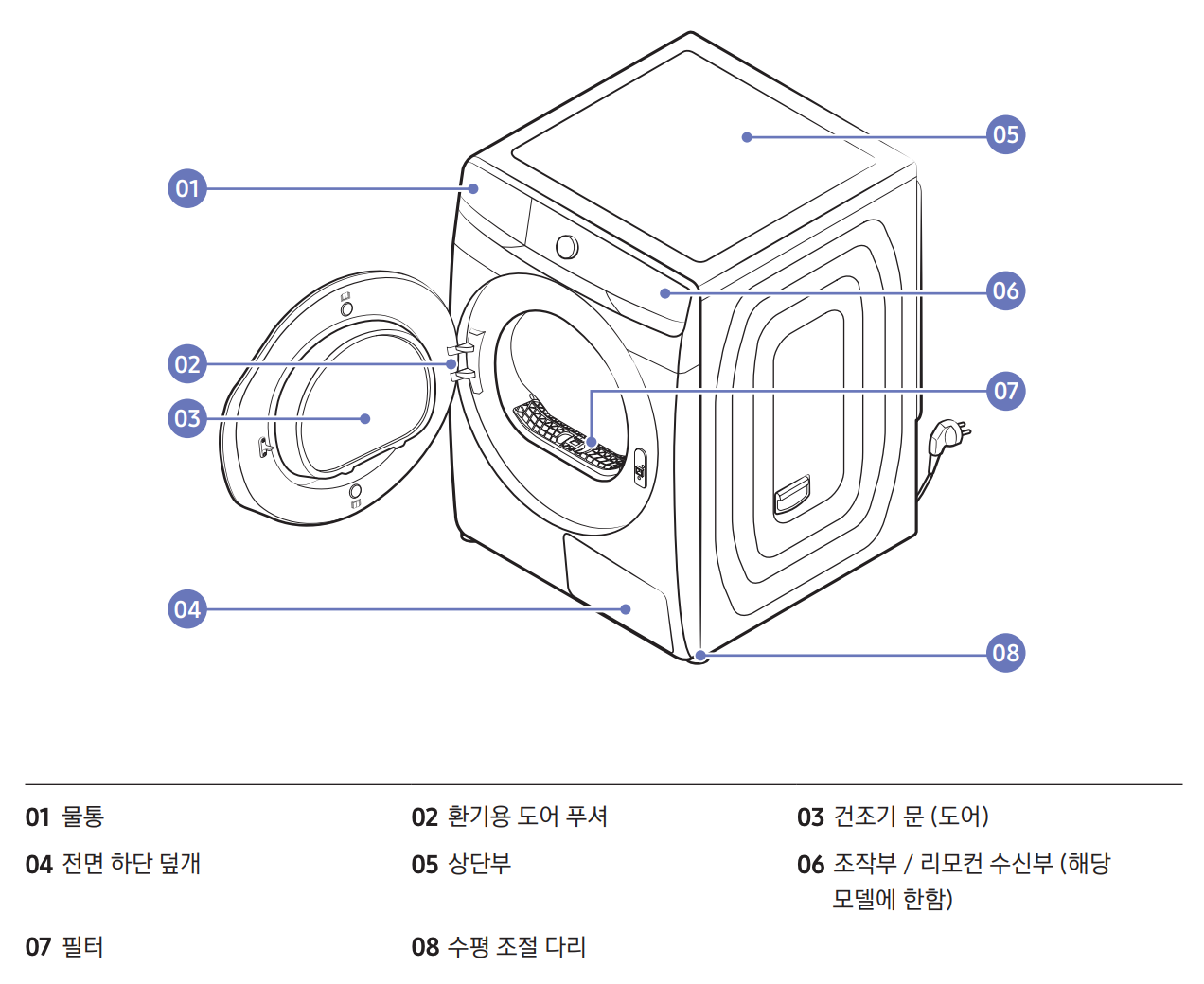 삼성전자 DV21DG8600BV AI 건조기 21kg 각 부분의 이름