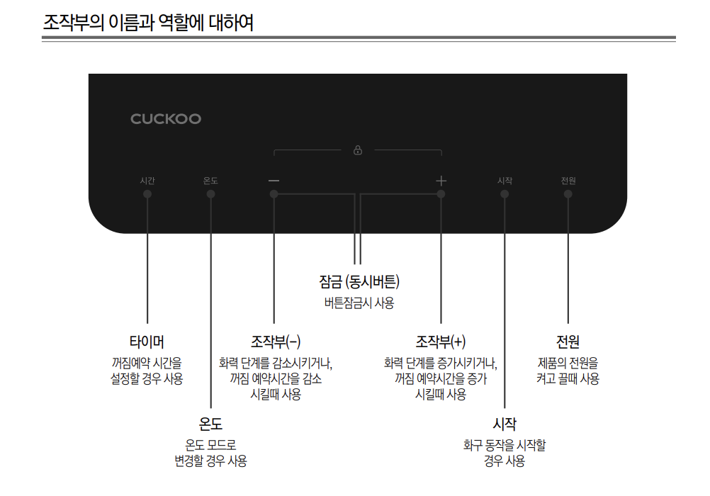 쿠쿠 CIR-C102FB 제어판 쿠쿠 CIR-C102FB 사용 방법