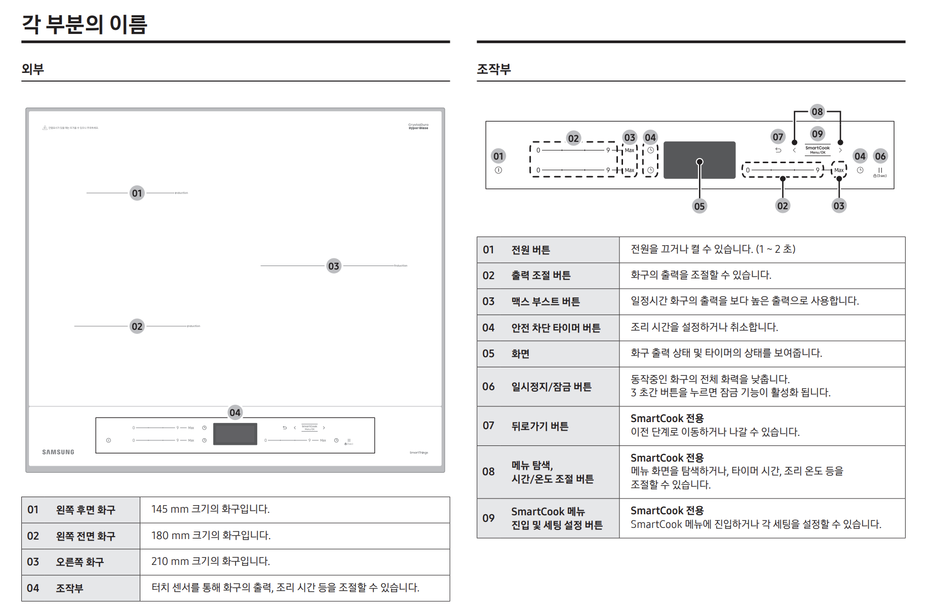 삼성전자 비스포크 NZ63D650AXH 화이트 인덕션 3구 빌트인 전기레인지 사용자 매뉴얼